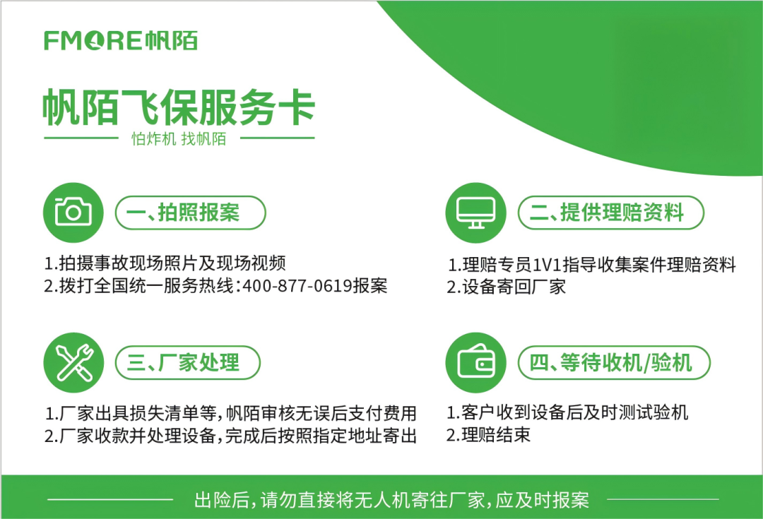 答:简单说,帆陌飞保主打“全场景+全品类”保障,能适配绝大多数无人机需求~